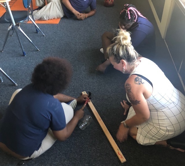 Mrs. Widger has utilized her passion and love of music to engage students in constructing their own instrument, a diddley bow, as part of her summer curriculum. The diddley bow is a single-stringed American instrument which influenced the development of the blues sound. It consists of a single string of baling wire tensioned between two nails on a board over a glass bottle, which is used both as a bridge and as a means to magnify the instrument's sound. It was traditionally considered a starter or children's instrument in the South, especially in the African American community, and is rarely heard outside the rural South.